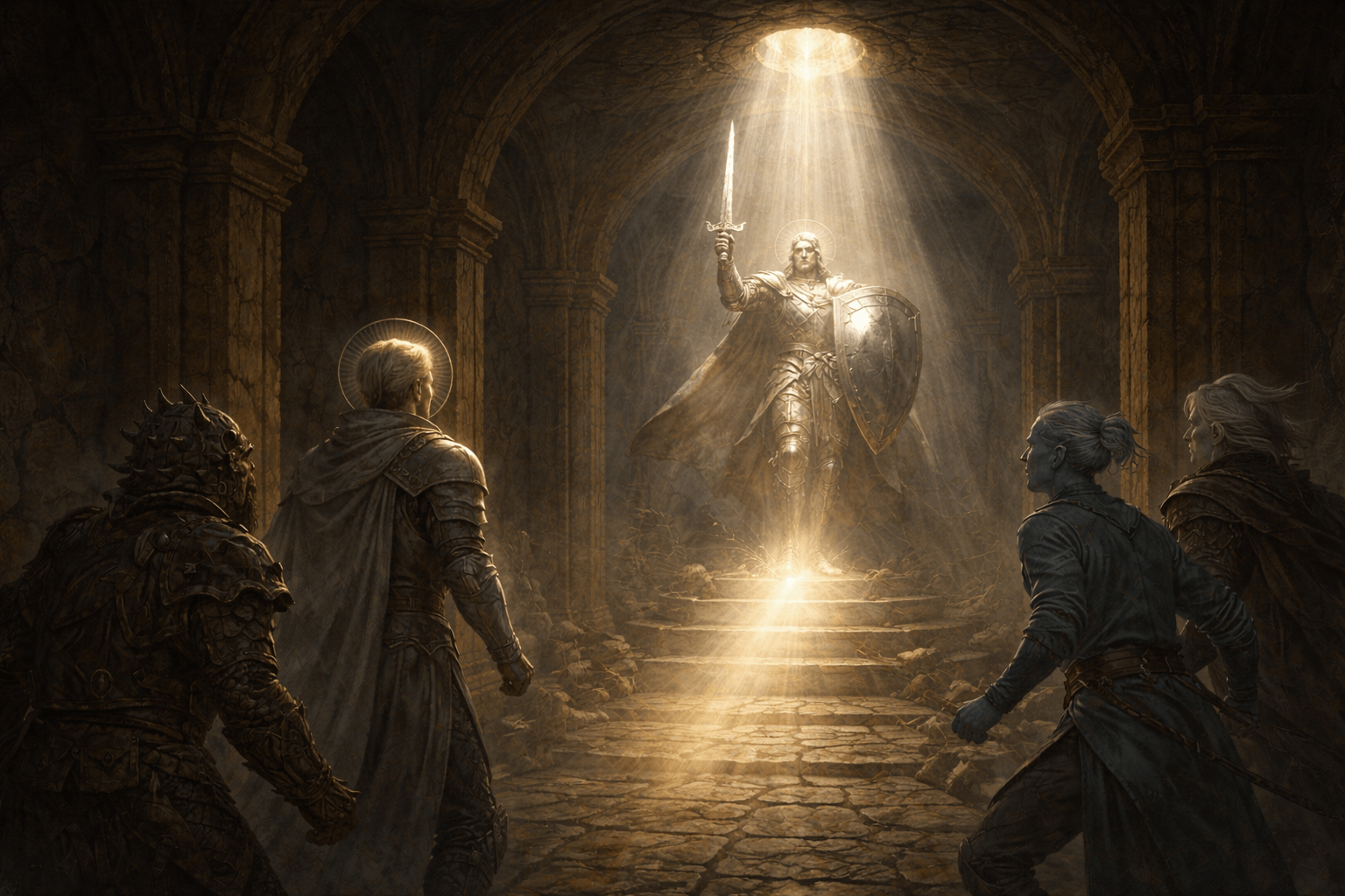 - Marshall’s Ultimatum: Marshall and his knights depart to gather High Keeper Ophelia and a host, instructing the party to hold the Cathedral and meet them there in two weeks.